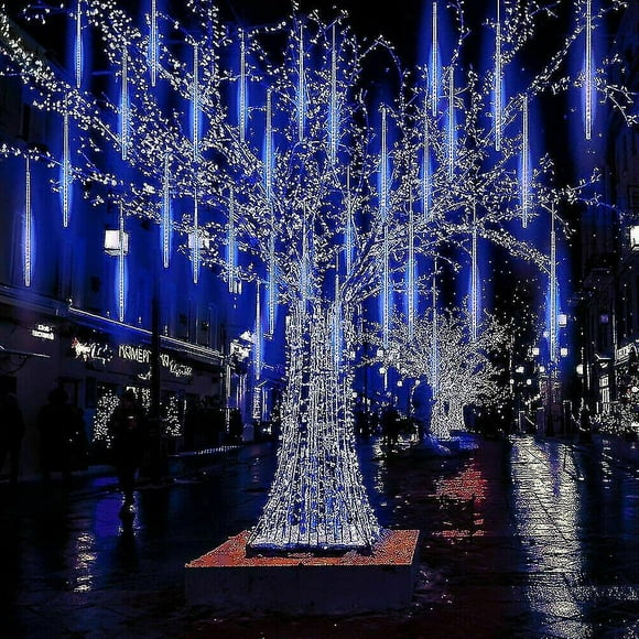 Lluvia de meteoritos Luces navideñas Luz exterior Decoración navideñaGuirnaldas de luces solares de 12m, 100led/22m, 200 Led, guirnalda impermeable para exteriores, lámpara navideña para decoración de jardín