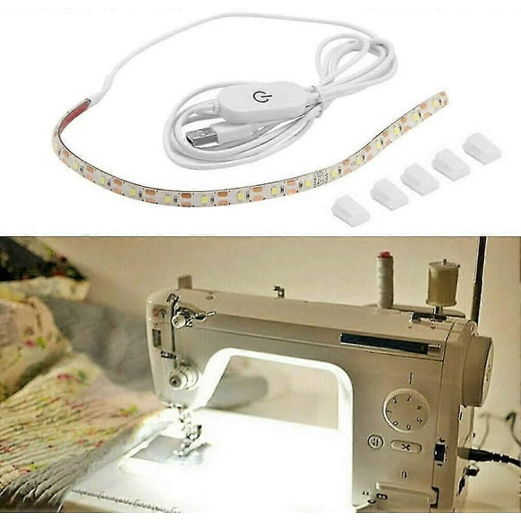 Máquina de coser manual Mini máquina de coser portátilTira de luz LED brillante para máquina de coser con regulador táctil y fuente de alimentación USB