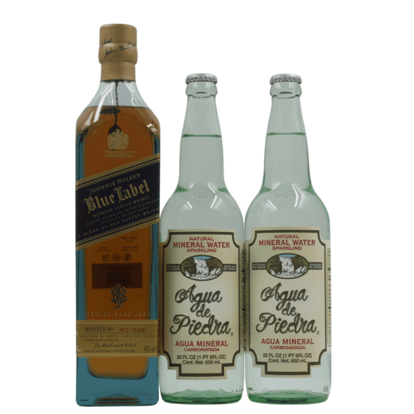 Johnnie Walker Blue Label 750 ml + 2 Aguas Minerales Agua de Piedra 650 ml