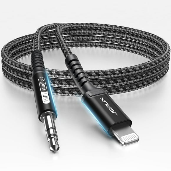 Cable auxiliar JSAUX para iPhone, 3,3 pies, 3,5 mm, coche, negro