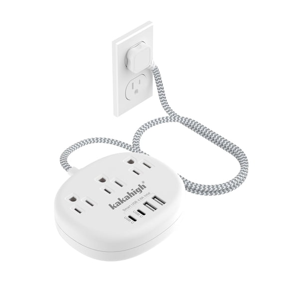Cable de extensión de 2 clavijas / Cable de extensión de 2 víasCable de extensión corto con protector contra sobretensiones (1080J) - Cable de extensión pequeño, mini cable de extensión con 3 salidas de CA y 3+ USB, estación de carga junto a la cama para el hogar