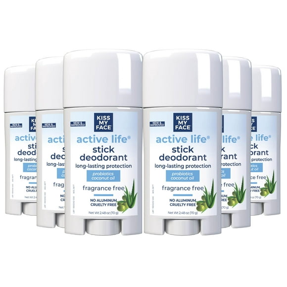 Desodorante Kiss My Face Active Life sin fragancia, sin aluminio, para mujer y hombre, con extracto de semilla de pomelo, romero y salvia, 75 g (paquete de 6)