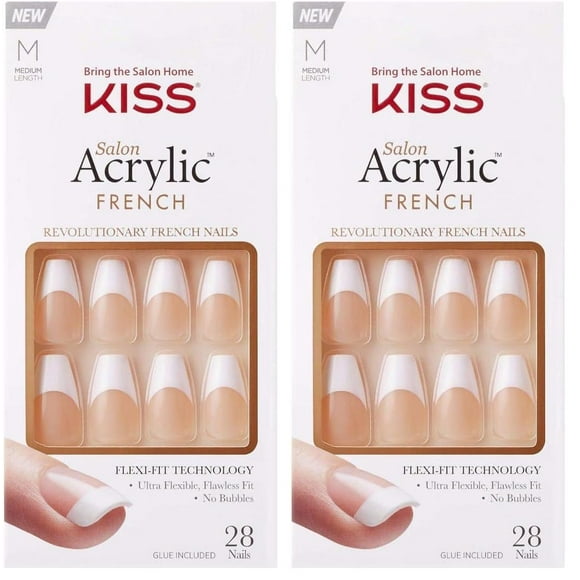Set de Uñas Postizas KISS Salón Acrílico Francés Mediano Cuadrado 28 piezas