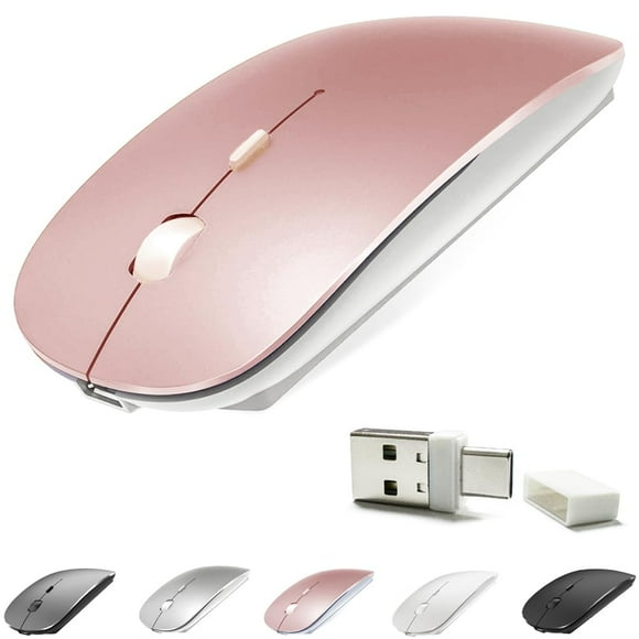 Ratón Bluetooth KLO recargable para MacBook Rose Gold-BRatón LED recargable KLO (BT5.2+Type-C+USB2.4G), ratón Bluetooth para MacBook/MacBook Air/Pro/iPad/ordenador portatil/notebook/PC/Chromebook (LED y blanco)