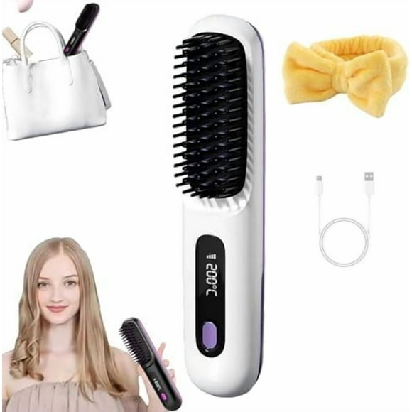 Peine Alisador de Cabello Inalámbrico | Cepillo Alisador de Iones Negativos | Revestimiento Cerámico | 3 Niveles de Calor | Para Cabello Rizado, Grueso, Fino y Barba | Portátil y Recargable por USBCepillo para plancha de pelo Mini Peine portátil | Recargable inalámbrico | Calentamiento Rápido Cerámico | 3 Ajustes de temperatura: 320°F/356°F/392°F | Todos los tipos de cabello | Carga tipo C