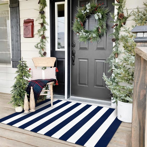 Alfombra Exterior KOZYFLY 91x152 cm Algodón Azul Marino y BlancoPasillo de Alfombra KOZYFLY 51x79 cm Antideslizante Impermeable Marrón