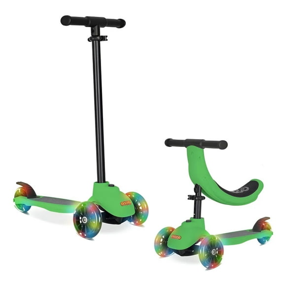 Triciclo KRIDDO 2 en 1 para niños pequeños con dirección rosaScooter / Triciclo Evolutivo 5 en 1 de Equilibrio para Niños, Patinete Multifuncional Convertible con Asiento Desmontable, Guía y Luz LED, Color Verde