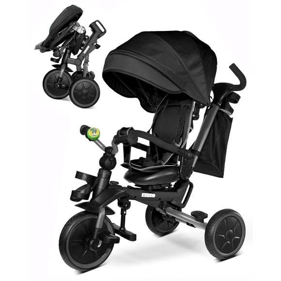 KRIDDO Cochecito triciclo plegable 8 en 1 para niños de 18 meses a 5 años, cinturón de seguridad de 5 puntos, pedal de freno de 1 paso, toldo extendido, reposapiés triple, ventana retrovisora de segTriciclo KRIDDO para niños de 2 a 5 años con rueda de 30 cm, sin pinchazos