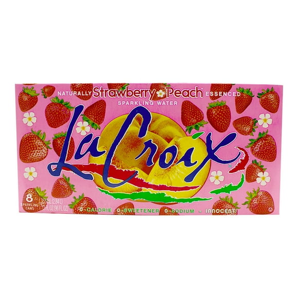 Agua gasificada La Croix Core sabor fresa durazno 8 latas de 355 ml c/uAgua con gas La Croix, pura, 355 ml (paquete de 12)