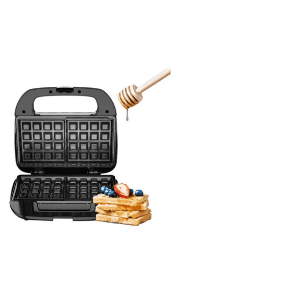 Máquina De Sándwich De Desayuno Multifunción 3 En 1 NEGROWaflera eléctrica LabG para dos Wafles Diseño cuadrado Base vertical