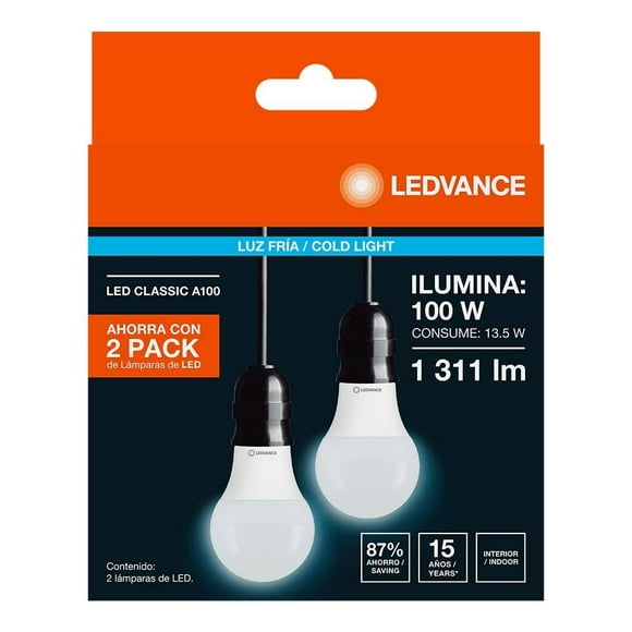 Paquete de Lámparas Ledvance 2pack de focos LED Eco A100 13.5w 865 G10 MK luz fríaLámpara Ledvance Led Eco Sensor 9W 800lm 6500K BIV E27