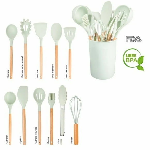 Juego de Utensilios de Cocina de Silicón 12 Piezas con Mango de Madera y Base | Resistente, Ecológico LION TOOLSPack 12pz Gas Butano Encendedores Boquillas 285Ml Lion Tools blanco 5.2x5.2x18