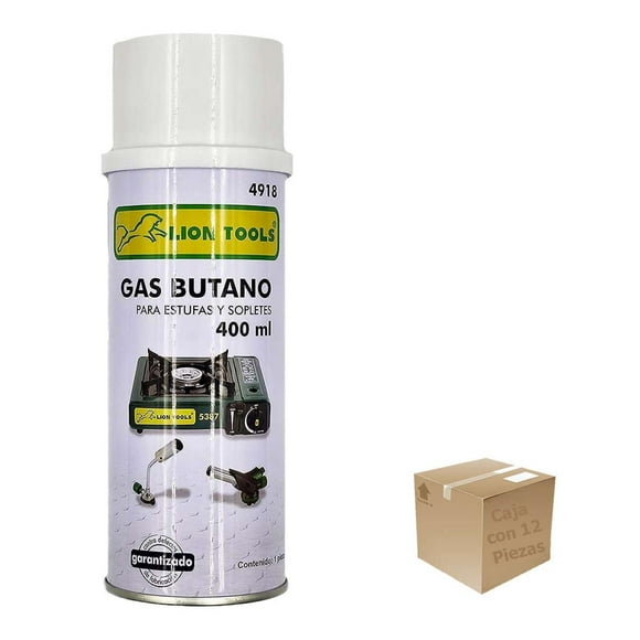 Gas Butano para Rellenar Encendedores Recargables LION TOOLS12 Pzs Gas Butano Para Estufas Y Sopletes De 400ml blanco 400ml