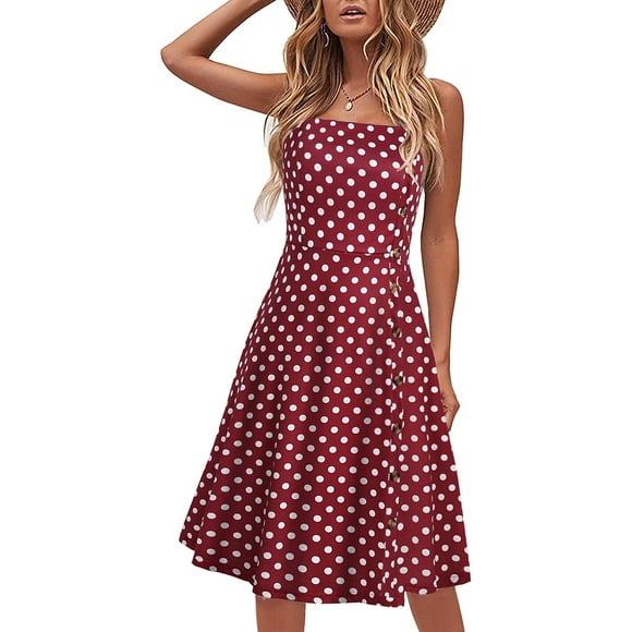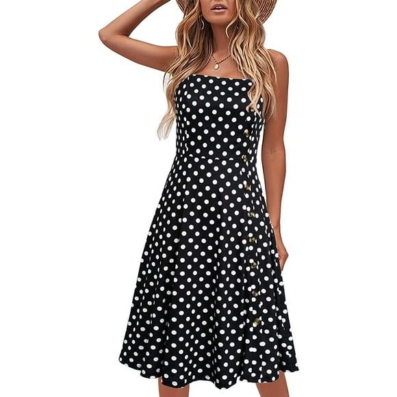 Vestido de verano Liyinxi sin mangas a lunares a midi para mujer