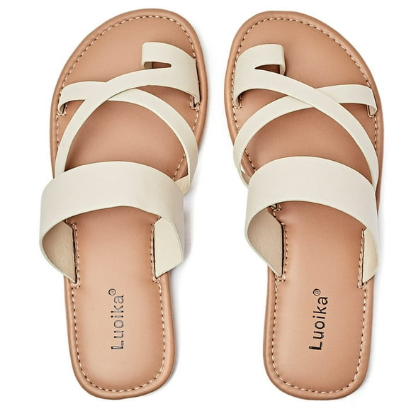 Sandalias planas Luoika para mujer, anchas, color beige