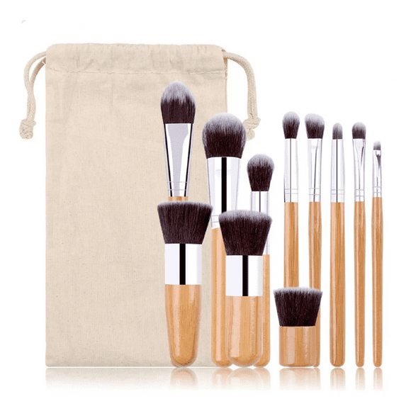 Brochas De Maquillaje Bambú Ecológicas 11 Pcs, Color Cafe Claro