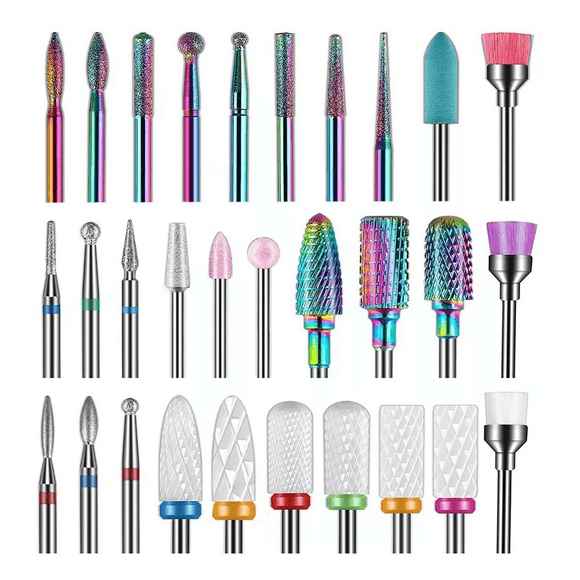30pz Puntas Para Pulidores Drill Limpiador Cutículas Taladro PLATA10 Piezas Brocas Para Uñas Limpiador De Cutículas y Taladro Malubero Brocas para Uñas