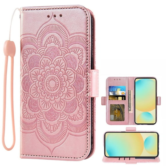 Asuwish - Funda tipo cartera compatible con iPhone 13 de 6,1 pulgadas, con cordón de cuero, tarjetero, correa para la muñeca, para iPhone 13 5G, iPhone 13, funda para iPhone 13, color rosa