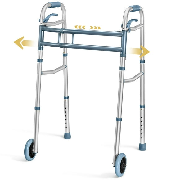 Andadores Medical King para personas mayores Andador ligero de aluminio con ruedas, ancho y altura ajustables, andador plegable para personas mayores, discapacitadas, con 2 ruedas delanteras
