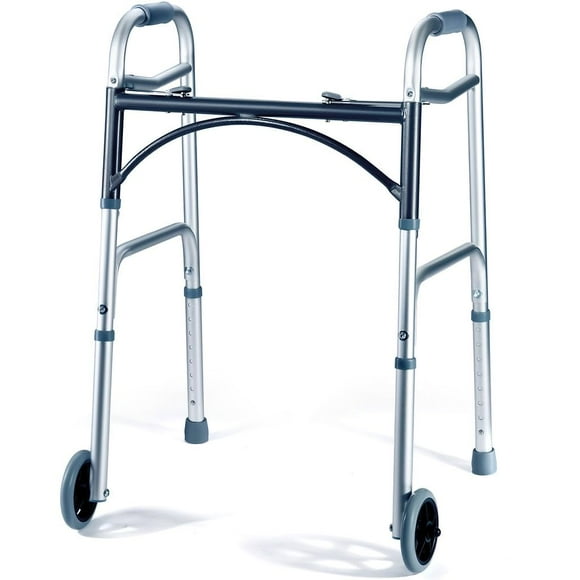 Andador con ruedas Medical King de aluminio plateado para adultos mayores, capacidad de peso de 159 kg, plegable, estilo clásico