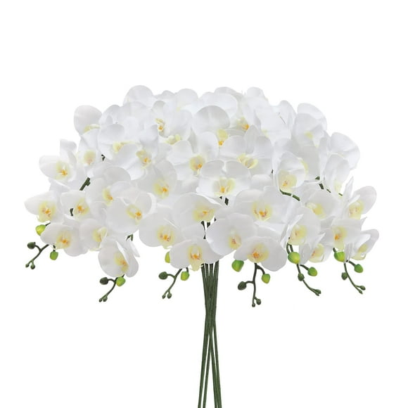 6 piezas tallos de orquídea artificial MENGJIAQI orquídeas gran flor blanca 37 pulgadas 9 flores falsas decoración hogar boda