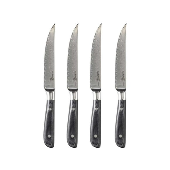 Cuchillo para pan Messermeister Meridian Elite de 9 pulgadas, acero alemánJuego de cuchillos para carne Messermeister Avanta de 5 pulgadas con filo fino x4