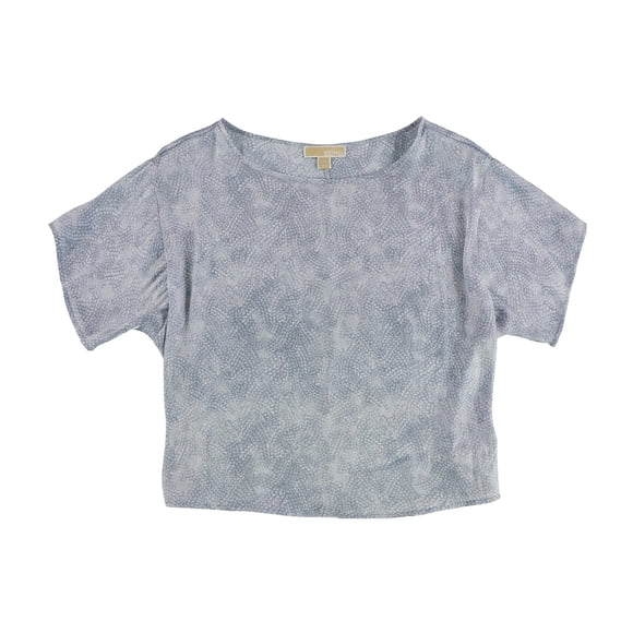 Michael Kors Womens Petal Print Basic T-Shirt, medblue, Petite, PXL