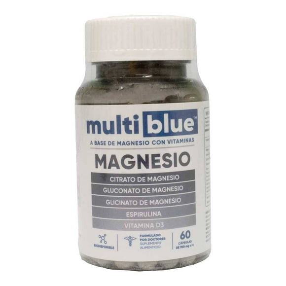 Suplemento alimenticio Multiblue con Magnesio con Vitaminas 60 CápsulasSuplemento alimenticio MultiBlue 60 cápsulas 500 mg c/u