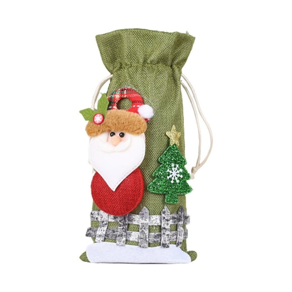 Naiovety Funda para botella de vino de Navidad, manga con cordón, de comedor, aplique 3D, fundas para beber cerveza, champán, calcetín, Kits de decoración para fiestas Papá NoelNaiovety Funda para botella de vino con cordón, media de encaje, de comedor, telas navideñas no tejidas, ropa de champán, bolsa de Kits de decoración para fiestas Gris