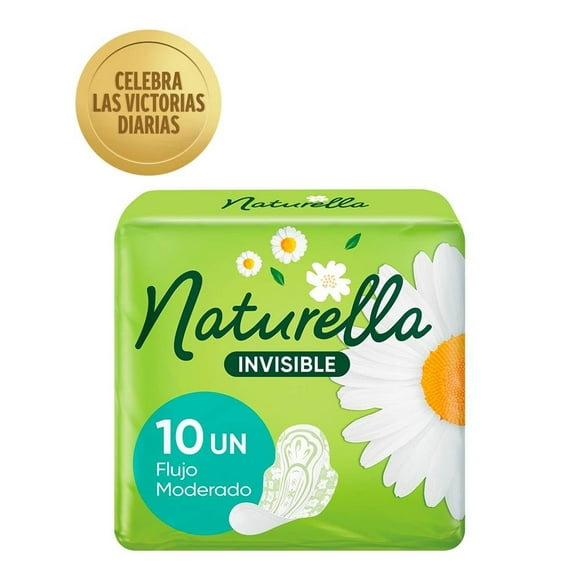 Toallas femeninas Naturella delgadas invisible flujo moderado 10 pzasToallas femeninas Naturella regulares flujo abundante con alas 10 pzas
