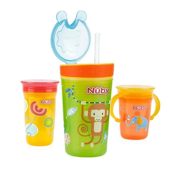 Biberón Nuby Anticólico 0 Meses 9 oz 270 ml varios modelos 1 pzaPaquete de Vasos Nuby por Etapas 3 Piezas Verde