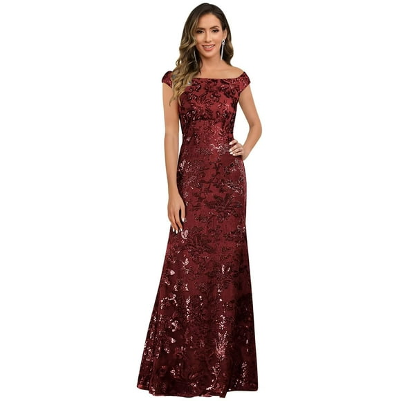 Vestido formal OFEYCHUN con lentejuelas granate y hombros descubiertos, talla 8, para mujerAvailable for Envío internacionalEnvío internacional