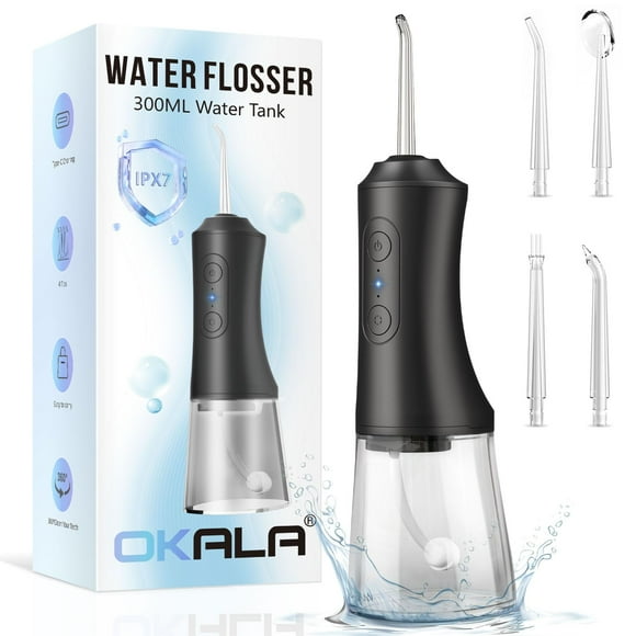 Hilo dental con agua OKALA, portátil, inalámbrico, 300 ml, IPX7