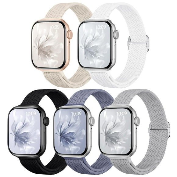 Correa para Apple Watch Osochic, delgada y elástica, paquete de 5 unidades, 40-49 mmPulseras de reloj Osochic, delgadas, trenzadas, de nailon elástico, paquete de 5 unidades, 40-49 mm