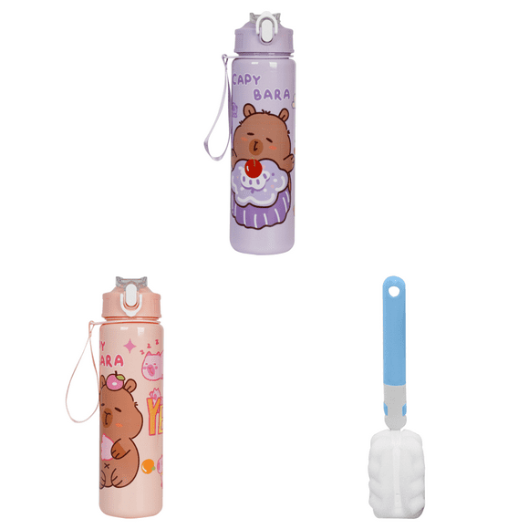 Botella de agua 700ml Capybara linda taza con paja y mango viajar púrpura