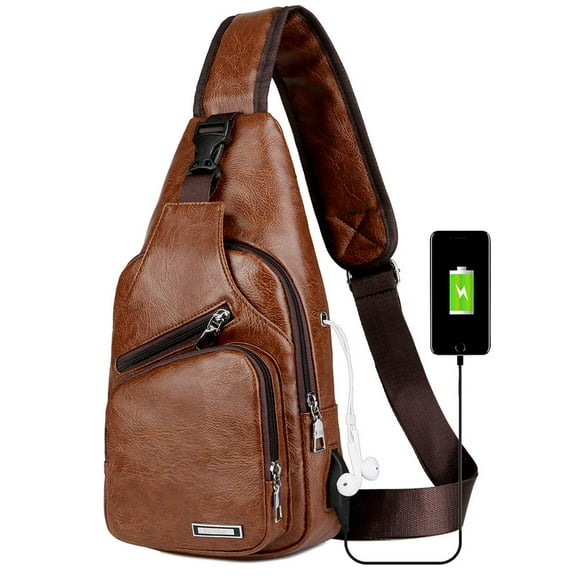 Mochila bandolera de piel para hombre con puerto USBAvailable for Envío internacionalEnvío internacional