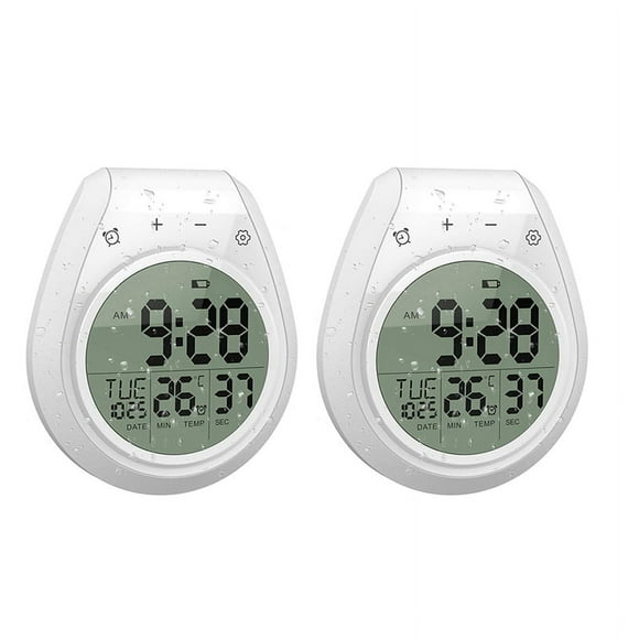 Reloj de ducha digital resistente al agua, reloj temporizador de baño, reloj de pared digital para cocina, pantalla LCD, formato de 12/24 horasReloj de ducha digital resistente al agua, reloj temporizador de baño, reloj de pared digital para cocina, pantalla LCD, formato de 12/24 horas, 2 unidades