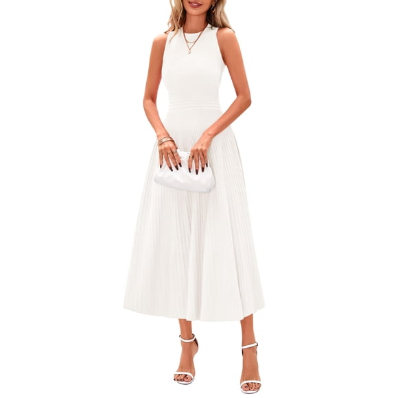 Vestido PRETTYGARDEN Primavera Verano Sin Mangas Línea A Midi Blanco Talla L