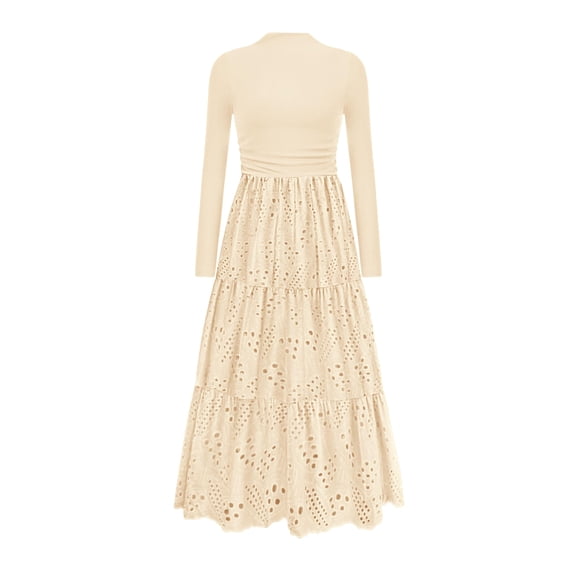Vestido largo PRETTYGARDEN para mujer, estampado, verano 2025, blancoVestido PRETTYGARDEN Maxi Beige de Manga Larga Otoño 2025