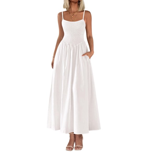 Vestido largo PRETTYGARDEN para mujer, estampado, verano 2025, blanco