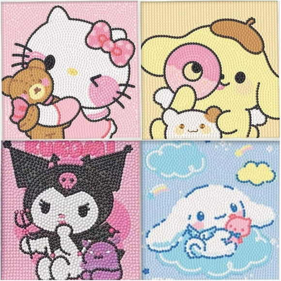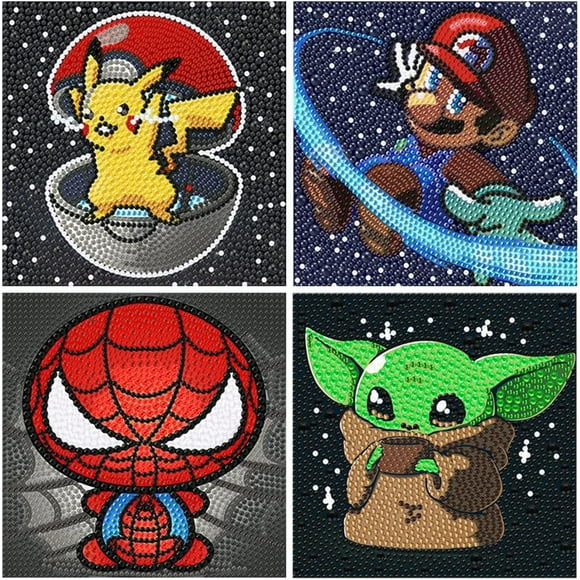 Cute 5D Diamond Art Kits, 4 Pack Cartoon DIY Painting Art for Kids Ages 4-8,Diamond Arts and Crafts Sets - Big Gem Full Drill Diamond Dots for Girls Boys Children Ages 8-12Diamond Painting Kits for Kids Diamond Art Gem by Number Kits Arts and Crafts for Kids Ages 8-12 Kids' Mosaic Kits DIY Full Drill Painting Kits for Home Wall Decor 4 Pieces 6" X 6"