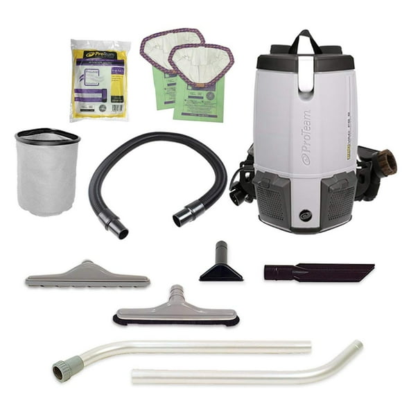 Aspiradora de mochila comercial ProTeam Super Coach Pro 6 con kit de herramientas ProBlade para superficies duras y alfombras, 6 cuartos, con cable, 107535Aspiradora Mochila ProTeam GoFit 10 Cuartos de Galón con Varita Telescópica Multisuperficie Con Cabl multicolor