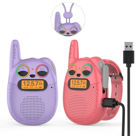 Walkie Talkies QNIGLO recargables para niños de 3 a 9 años, paquete de 2