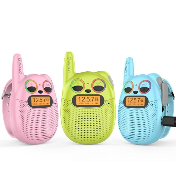 Walkie Talkies QNIGLO recargables para niños, paquete de 3 con FM