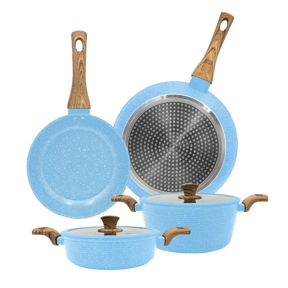 Batería De Cocina Sweet Cherry Con Recubrimiento Antiadherente De Cerámica Y Diseño Marmoleado Color Rosa 4 piezas- Queen SenseBatería De Cocina Lovecook con Revestimiento De Mármol Azul 6 Piezas