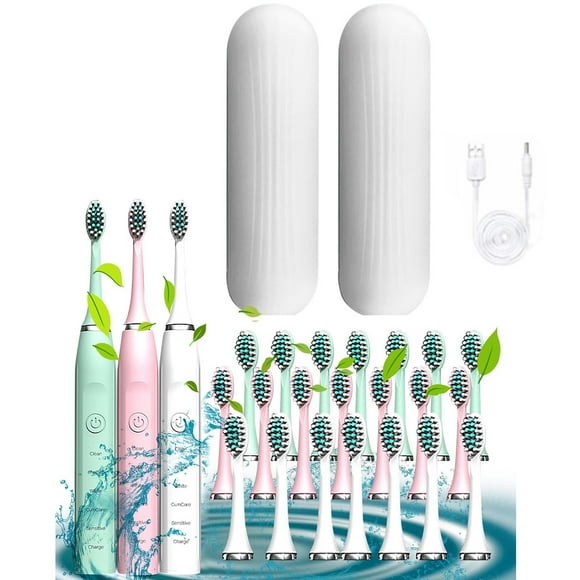 Cepillo de dientes eléctrico recargable | Cabezales de cepillo de repuesto de cerdas suaves para adultos | Motor de reducción de ruido | Batería de larga duración: 60 días | Carga USB | ResistenteAvailable for Envío internacionalEnvío internacional