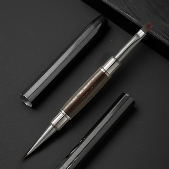 Pluma de madera para el arte de uñas, herramienta multifuncional de doble punta con plumilla de precisión y pincel plano, ideal para esmalte de uñas y pintura acrílica, 20 cm