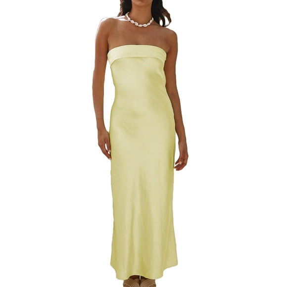 Vestido largo Realtix de seda satinada sin espalda para mujerVestido largo Realtix de seda satinada sin espalda para mujer