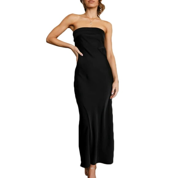 Vestido largo Realtix de seda satinada sin espalda para mujer