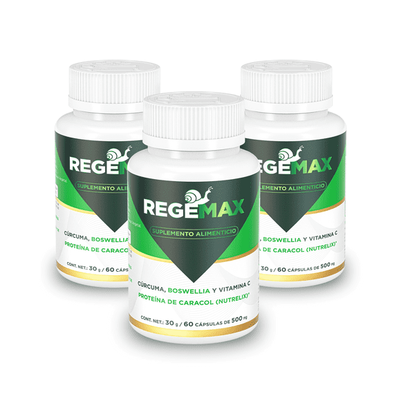 Suplemento Alimenticio Regemax, Nutrelix + Boswellia Serrata + Curcuma, 60 cápsulas, 30 gr, 3 pack.